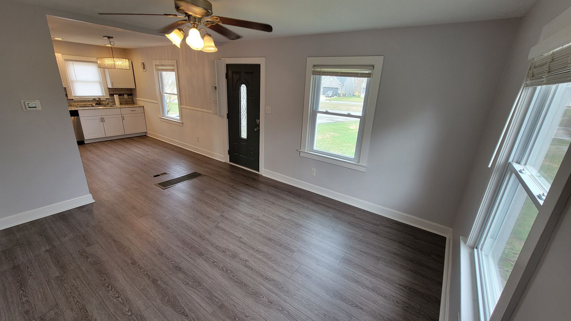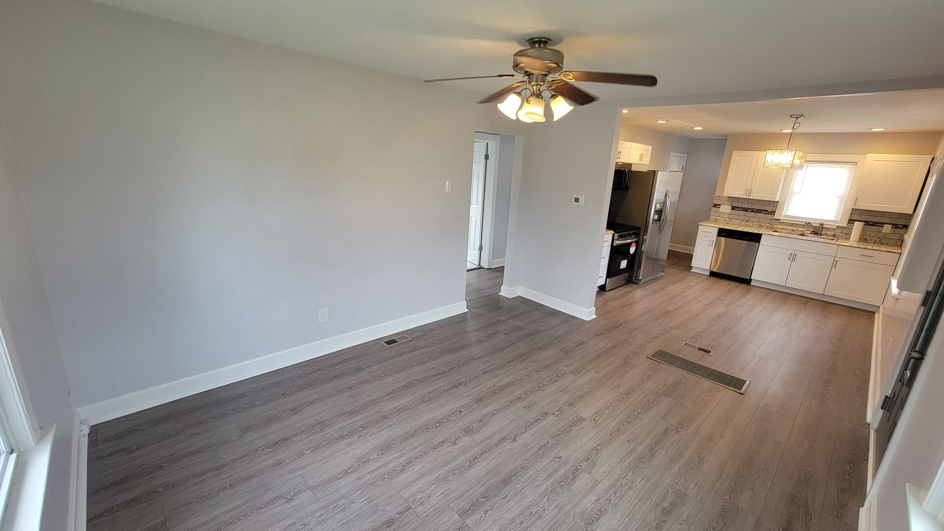 This wonderful house is waiting to welcome you. The house has remodeled kitchen and bathroom, new flooring, the house has been fully repainted. As you enter the house, you notice the natural welcoming light that shines though out the living room and kitchen. The living room has is cozy and welcoming. Letting the sun shine in through the may windows. The screen door is glass, this perfect for allowing even more light in to get that outside feel while your inside. Take a look into kitchen, you will notice updated appliances, the steel side by side refrigerator, microwave, a new stove, new countertops and cabinets. The subway tile back splash is also a tasteful touch. The two bedrooms are upstairs, both offer plenty of space. The 1st floor bathroom has a full tile surround and updated vanity, lights, and mirror. Down in the basement that is fully finished, you will find the 3rd bedroom. This bedroom is its own special spaces, that feels more like a retreat. With a fully updated bathroom, this will make a great primary bedroom. The bedroom is large and accommodating, perfect for the over sized bedroom set. The Basement area also has room for storage under the steps. You will find the laundry area down in the basement, that is large enough for full sized appliances. Need a universal area? You will find that basement, make it a entertainment area or a family area. The walkout basement leads to a very large fully fenced yard with a shed for storage.